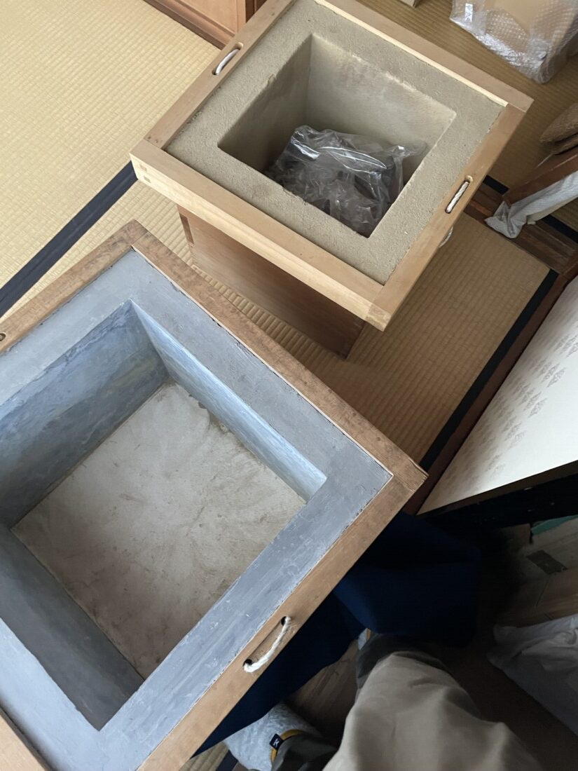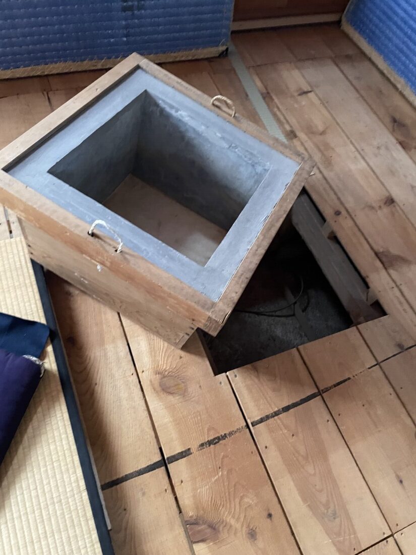 雪が降りました。蹲の水も凍らなくなったので、いよいよ春がやって参りました。大炉をあげます。以前は、二月が一番寒かったのですが、去年あたりから一月が1番寒いと感じたので、一月に大炉を開けるようになりました。